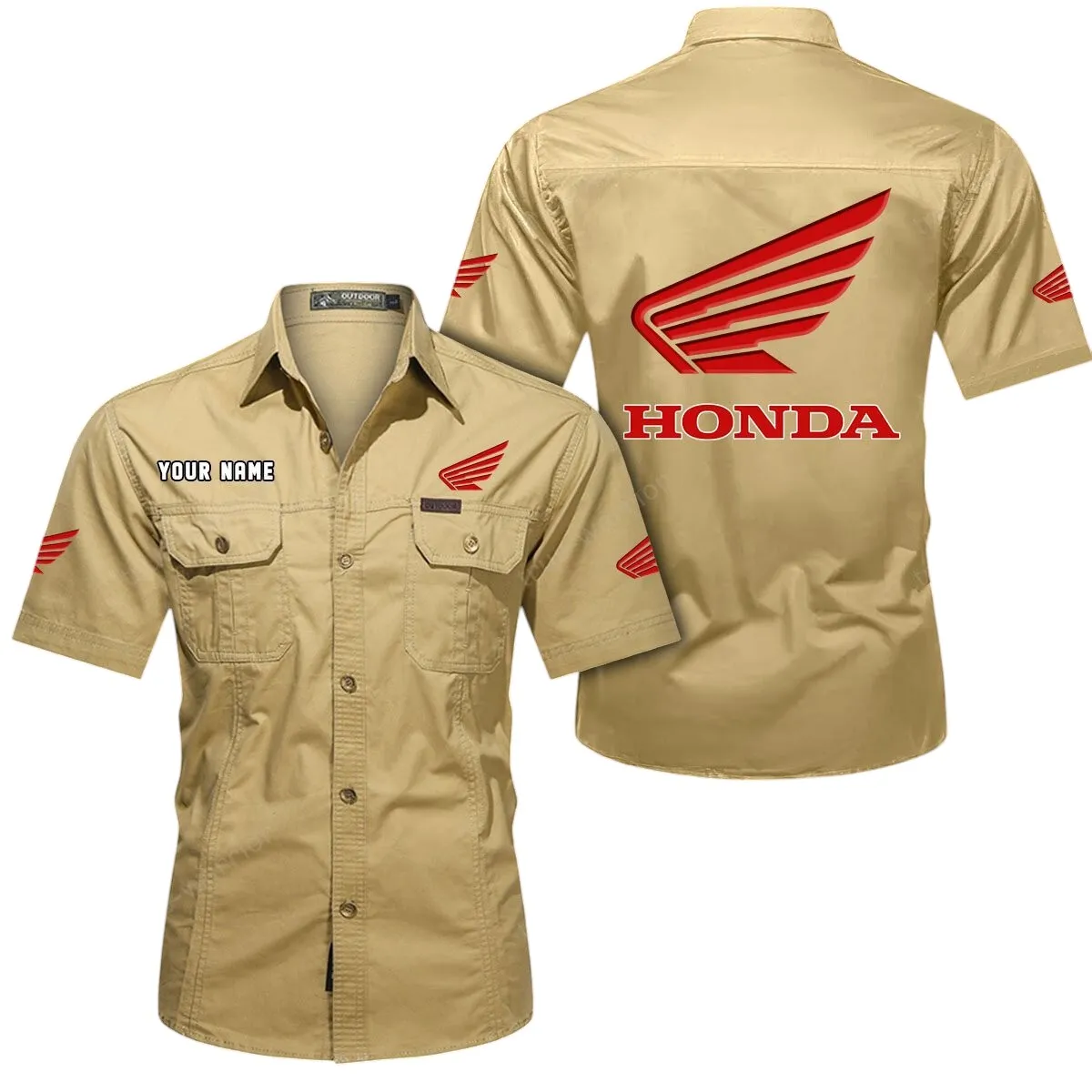 Honda Motorcycle Short Sleeved Shirt, All Over Print Button Shirt CAR444052625778 – Khaki