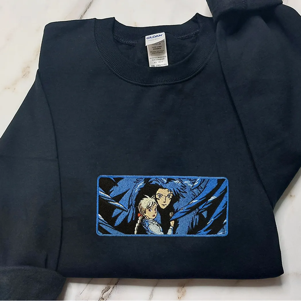 Howls Moving Castle Embroidered Crewneck Sweater, Ghibli studio Hoodie, Anime Sweatshirt, Gift For Anime Fan