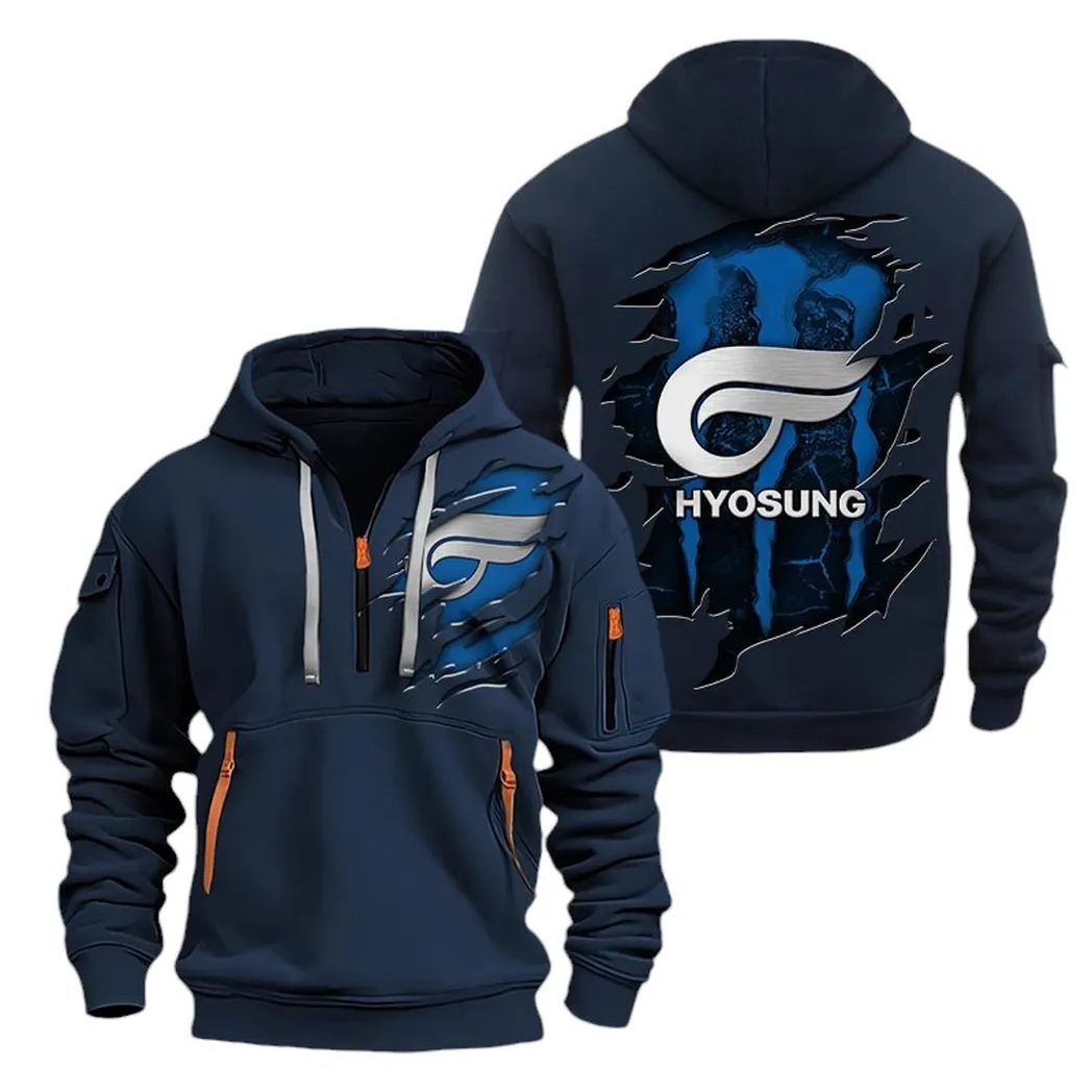 Hyosung Hoodie Half Zipper CAR8128092055, All Over Print Hoodie Half Zipper