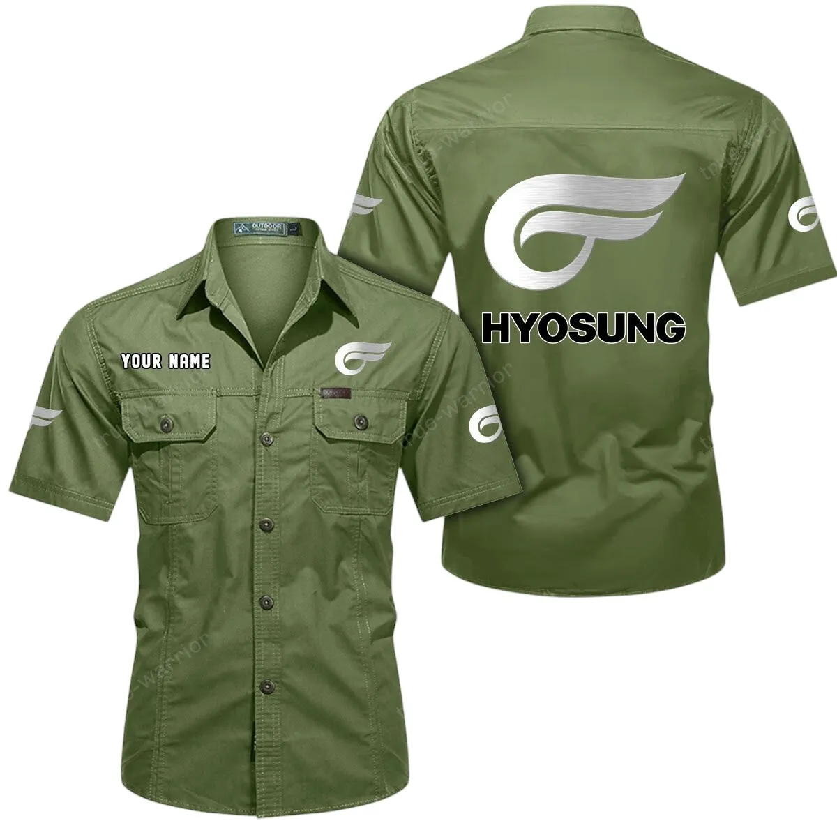 Hyosung Motorcyles Short Sleeved Shirt, All Over Print Button Shirt CAR444052625822 - Army Green