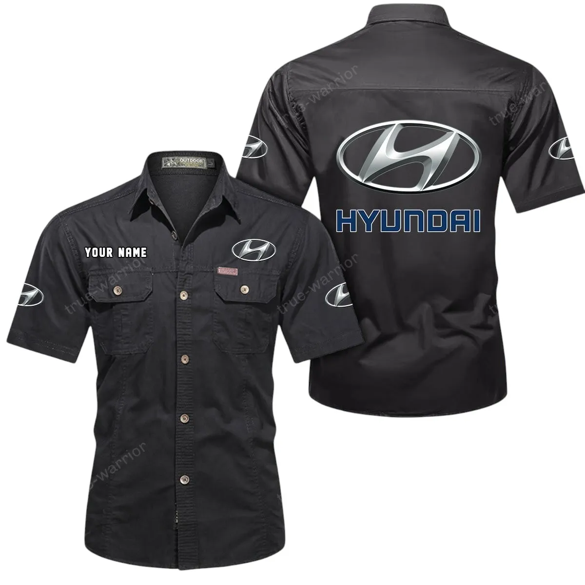 Hyundai Short Sleeved Shirt, All Over Print Button Shirt CAR444052625864 - Dark Blue