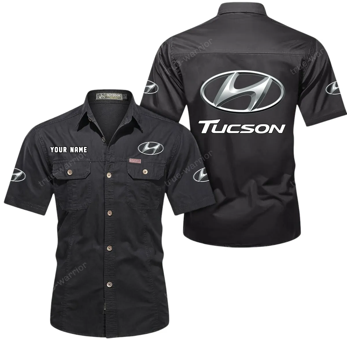Hyundai Tucson Short Sleeved Shirt, All Over Print Button Shirt CAR444052625842 - Khaki
