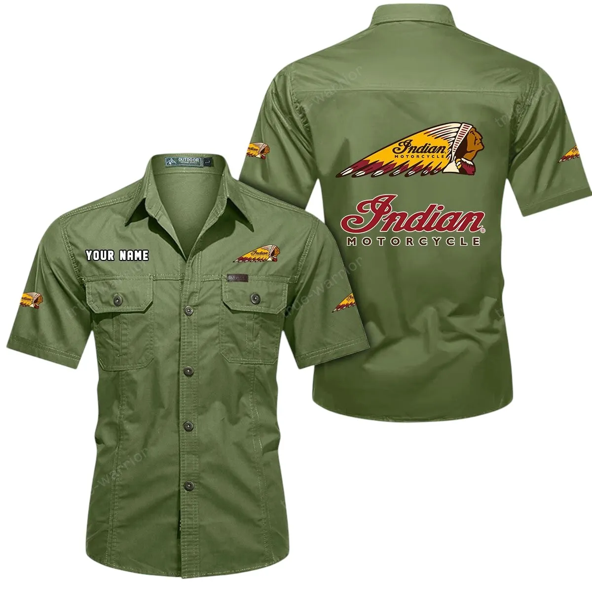 Indian Motorcycle Short Sleeved Shirt, All Over Print Button Shirt CAR444052625806 - Turmeric