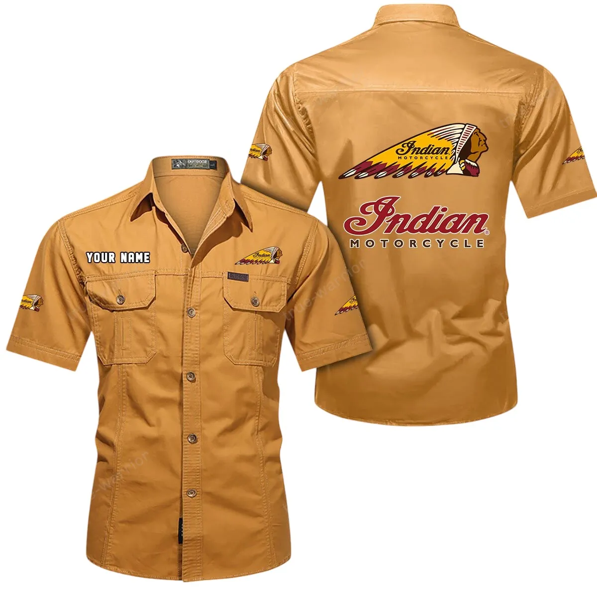 Indian Motorcycle Short Sleeved Shirt, All Over Print Button Shirt CAR444052625806 – Turmeric