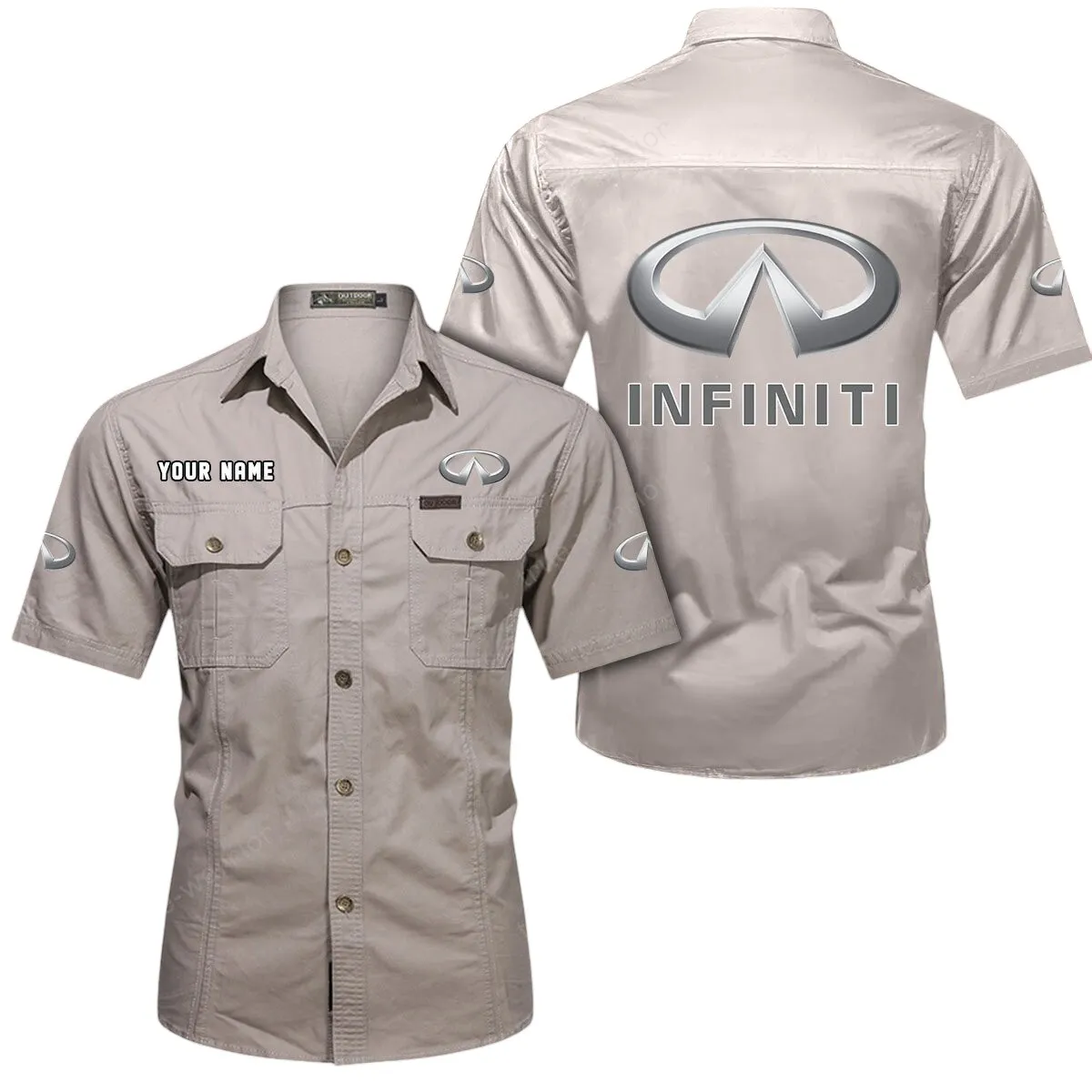 Infiniti Short Sleeved Shirt, All Over Print Button Shirt CAR444052625912 – Beige