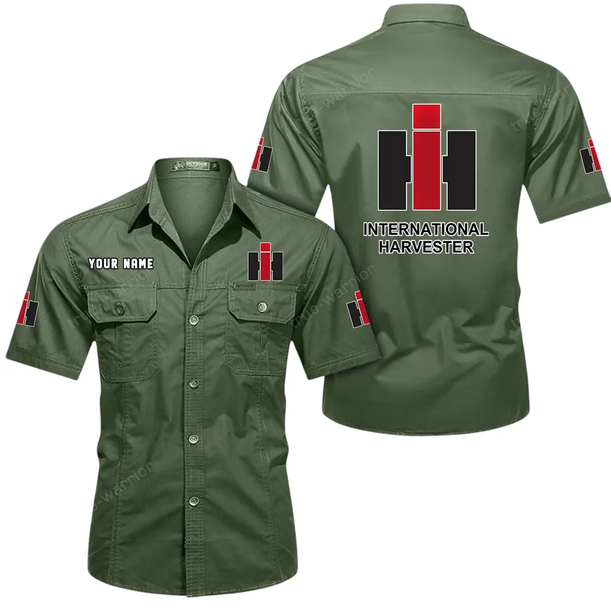 International Harvester Short Sleeved Shirt, All Over Print Button Shirt CAR444052625893 – Army Green