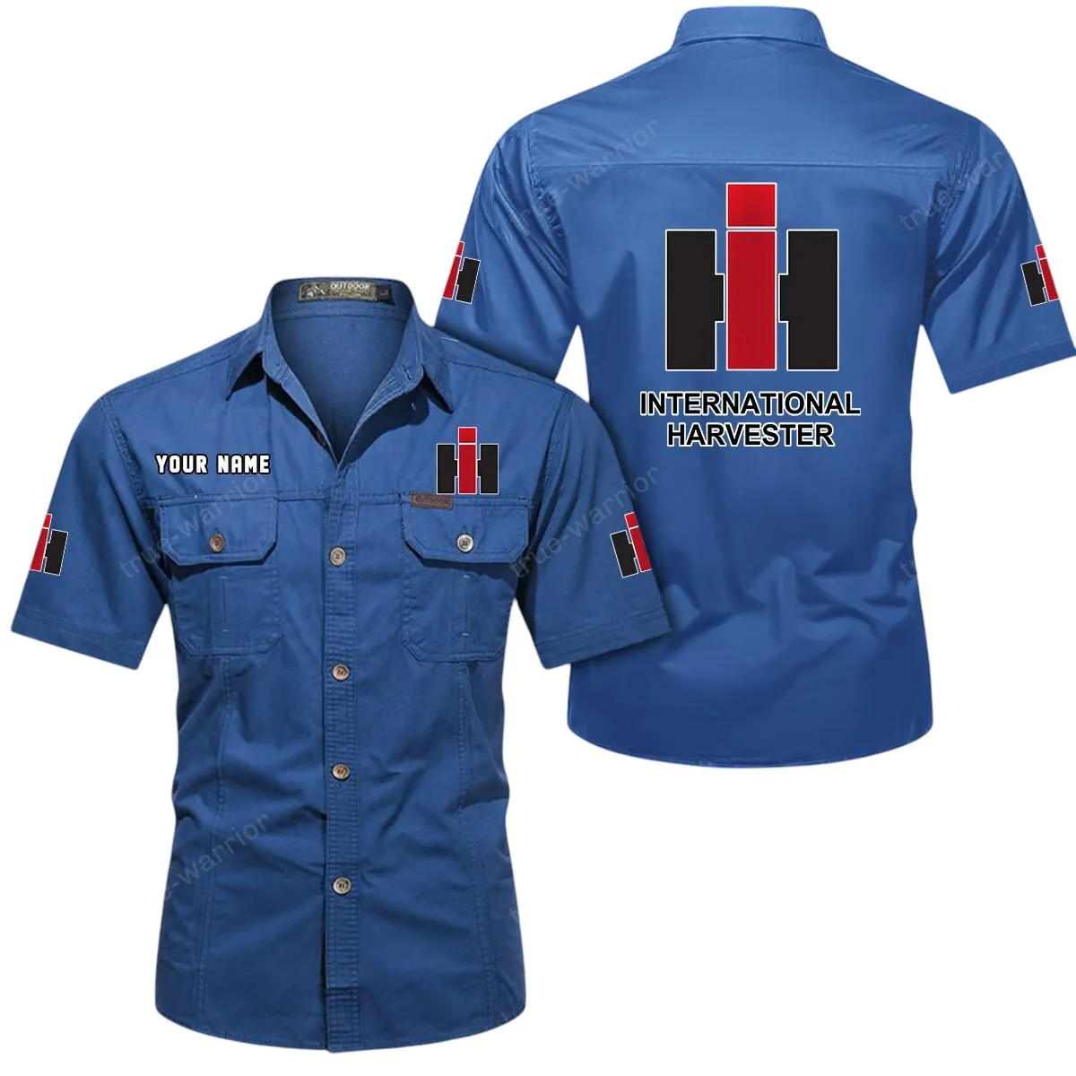 International Harvester Short Sleeved Shirt, All Over Print Button Shirt CAR444052625893 – Cowboy Blue