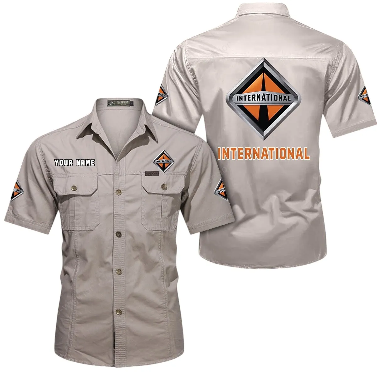 International Short Sleeved Shirt, All Over Print Button Shirt CAR444052625908 - Khaki