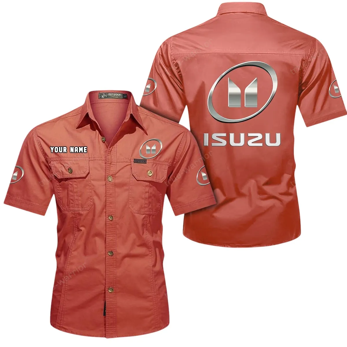 Isuzu Short Sleeved Shirt, All Over Print Button Shirt CAR444052625790 - Khaki