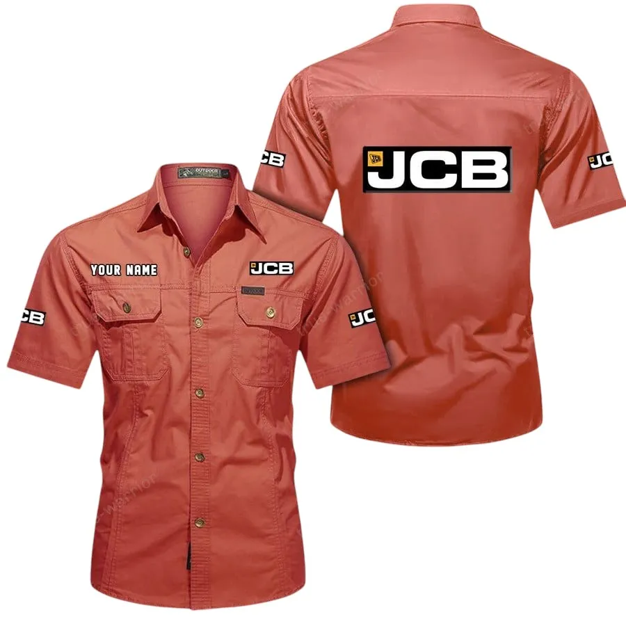 JCB Agricultural Tractors Short Sleeved Shirt, All Over Print Button Shirt CAR444052625944 – Red