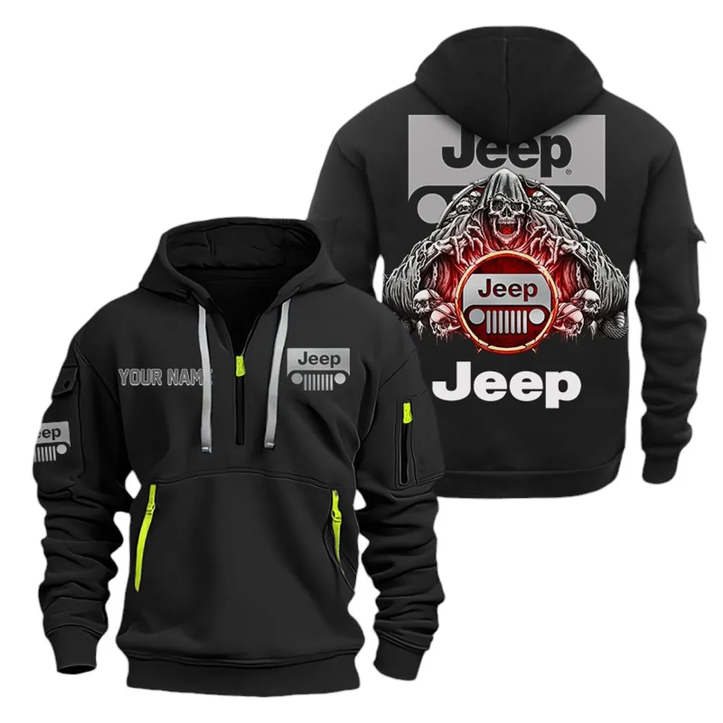 Jeep Hoodie Half Zipper CAR1201042047, All Over Print Hoodie Half Zipper