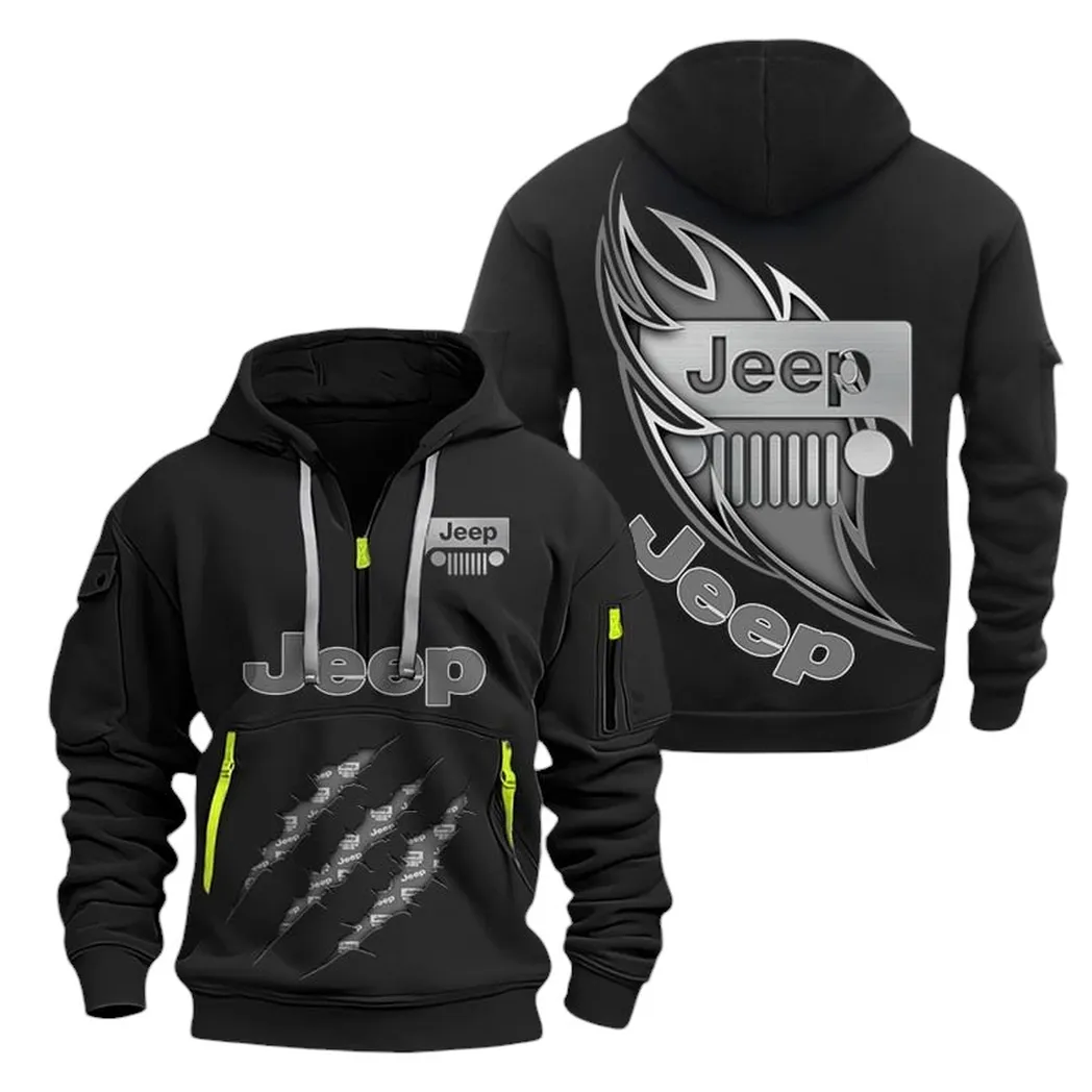 Jeep Hoodie Half Zipper CAR1371092056, All Over Print Hoodie Half Zipper