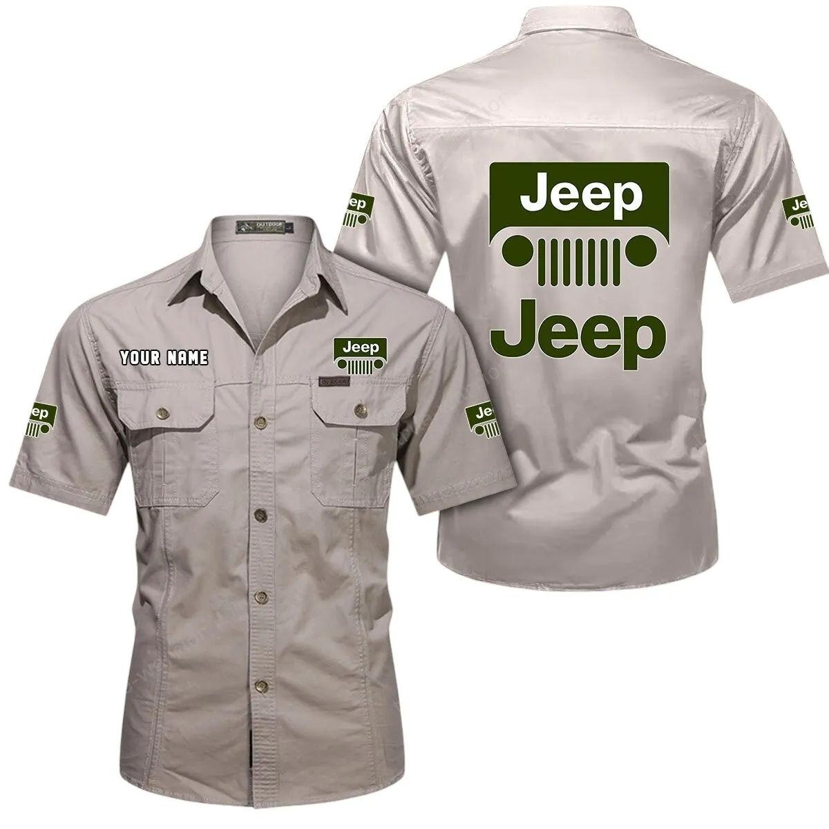 Jeep Short Sleeved Shirt, All Over Print Button Shirt CAR444052625936 - Beige