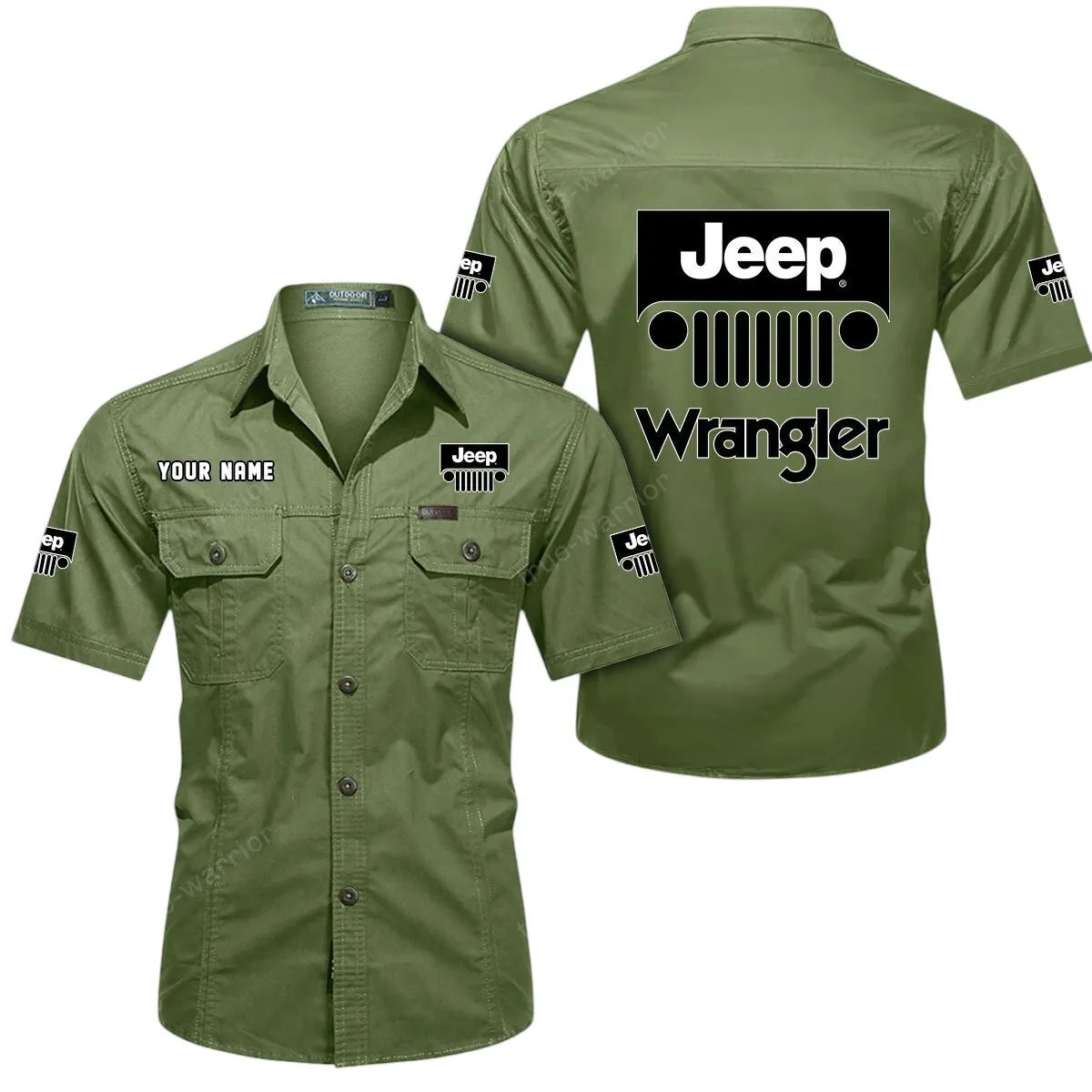 Jeep Wrangler Short Sleeved Shirt, All Over Print Button Shirt CAR444052625896 - Army Green