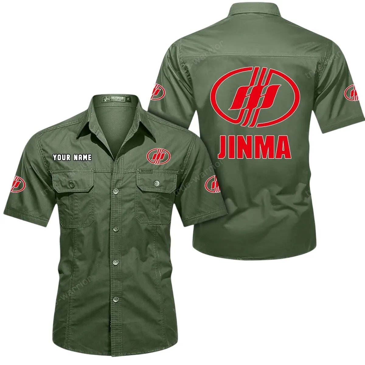 Jinma Short Sleeved Shirt, All Over Print Button Shirt CAR444052625960 – Army Green
