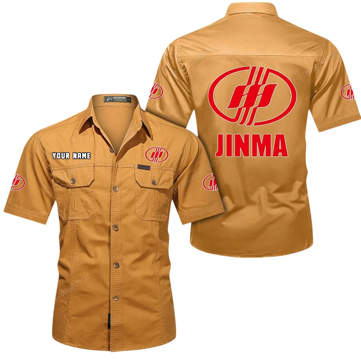 Jinma Short Sleeved Shirt, All Over Print Button Shirt CAR444052625960 - Khaki
