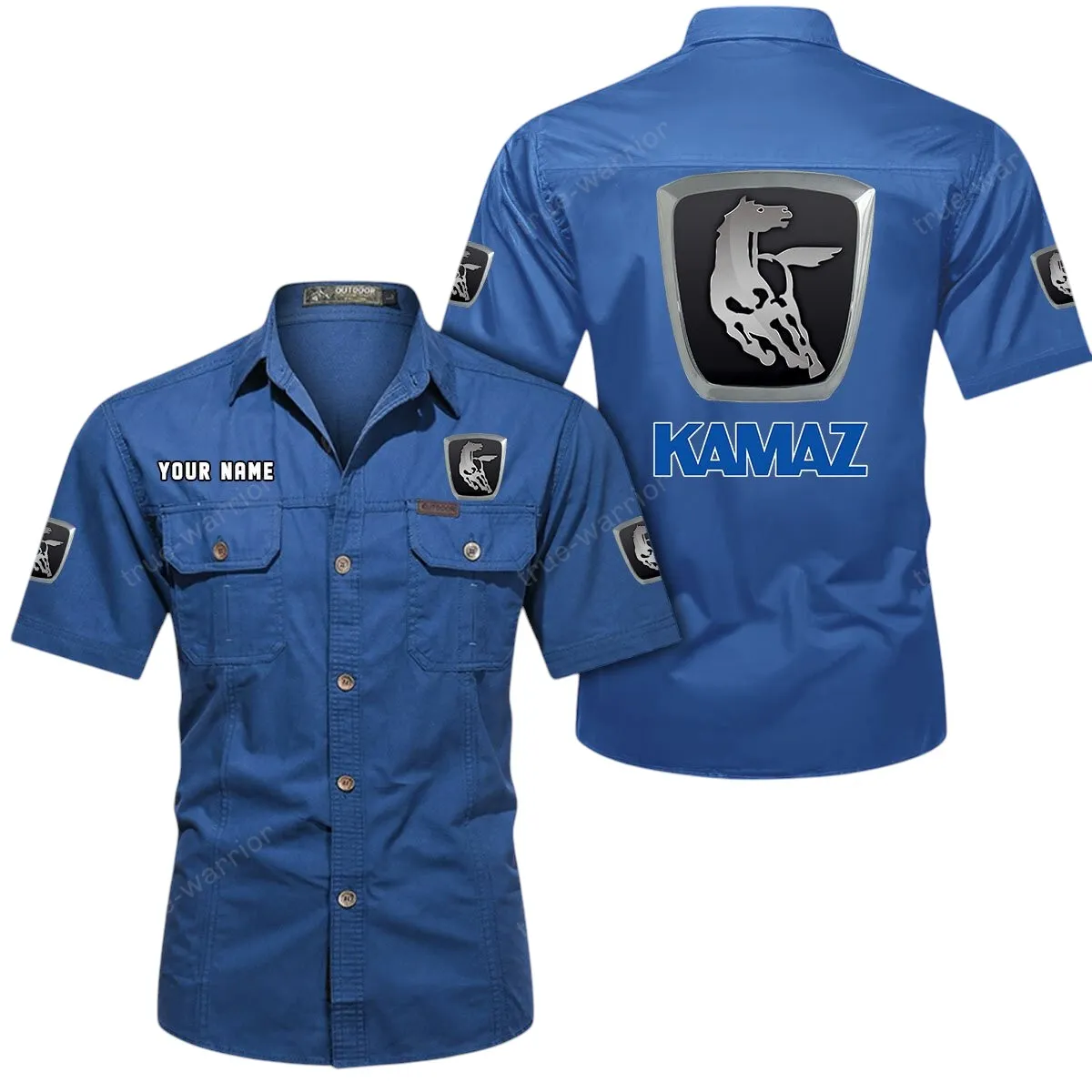 Kamaz Short Sleeved Shirt, All Over Print Button Shirt CAR444052625875 – Cowboy Blue