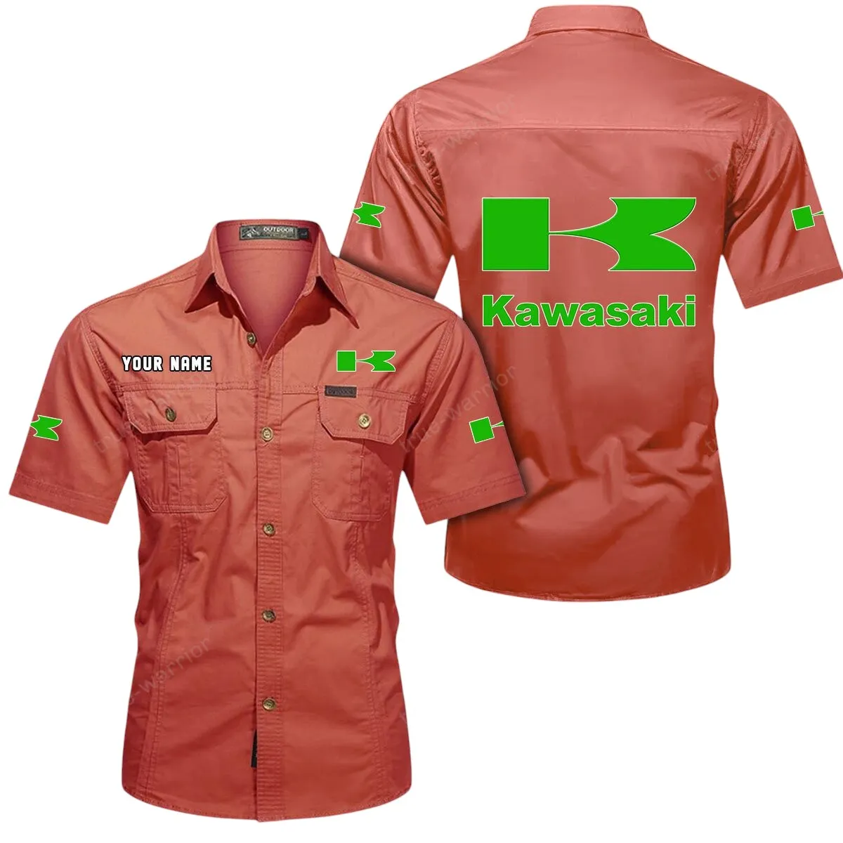 Kawasaki Short Sleeved Shirt, All Over Print Button Shirt CAR444052625812 - Khaki