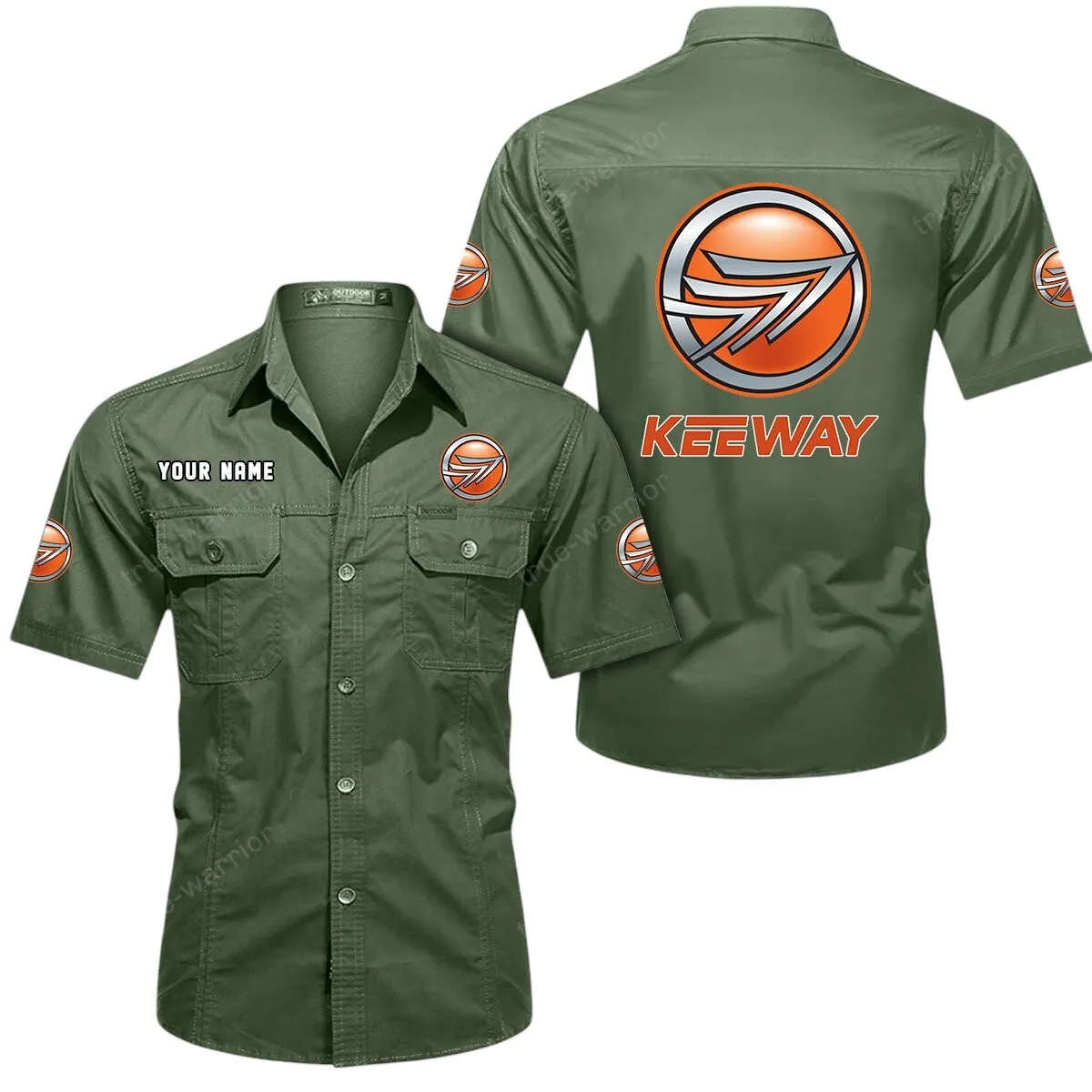 Keeway Motorcycles Short Sleeved Shirt, All Over Print Button Shirt CAR444052625850 – Army Green