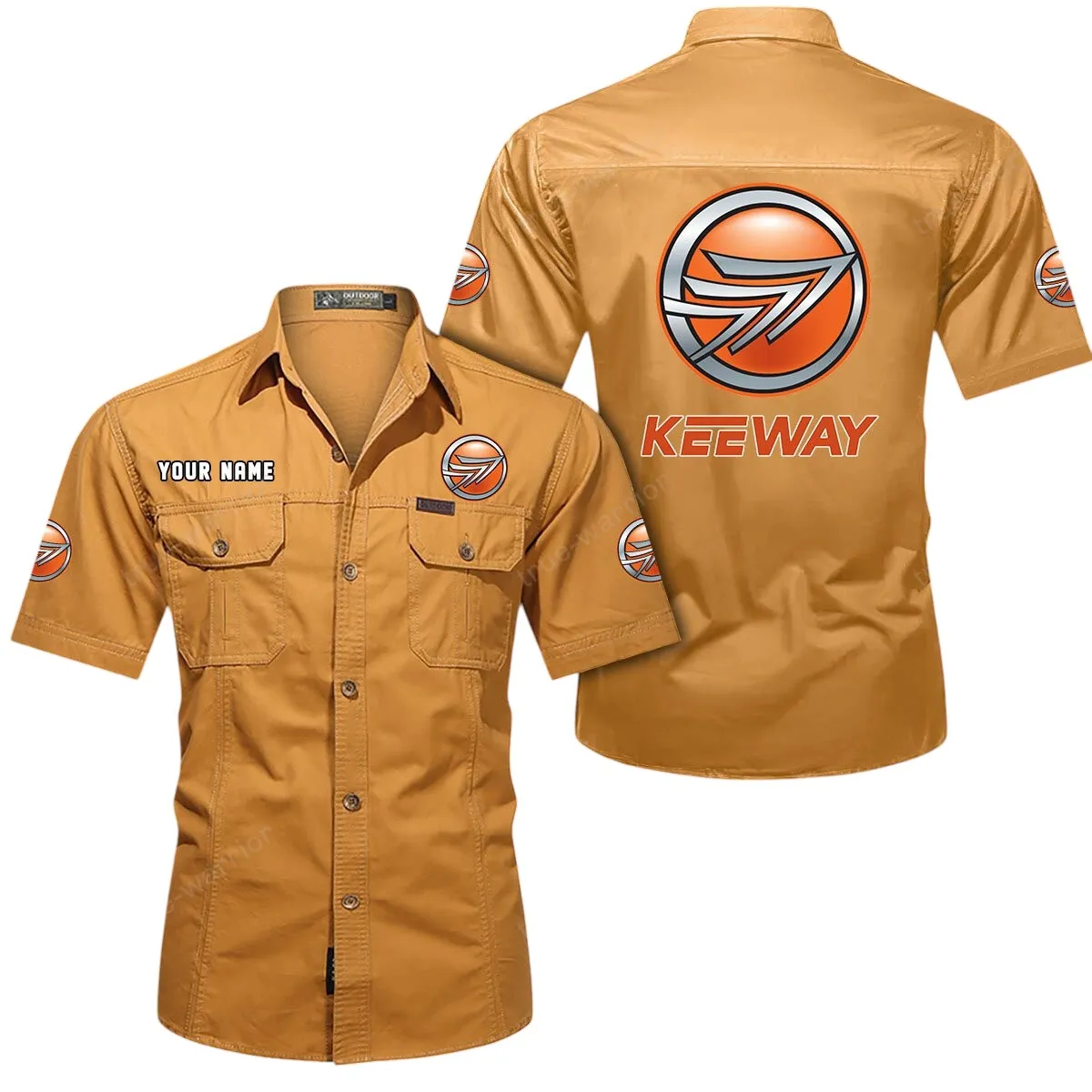 Keeway Motorcycles Short Sleeved Shirt, All Over Print Button Shirt CAR444052625850 - Khaki