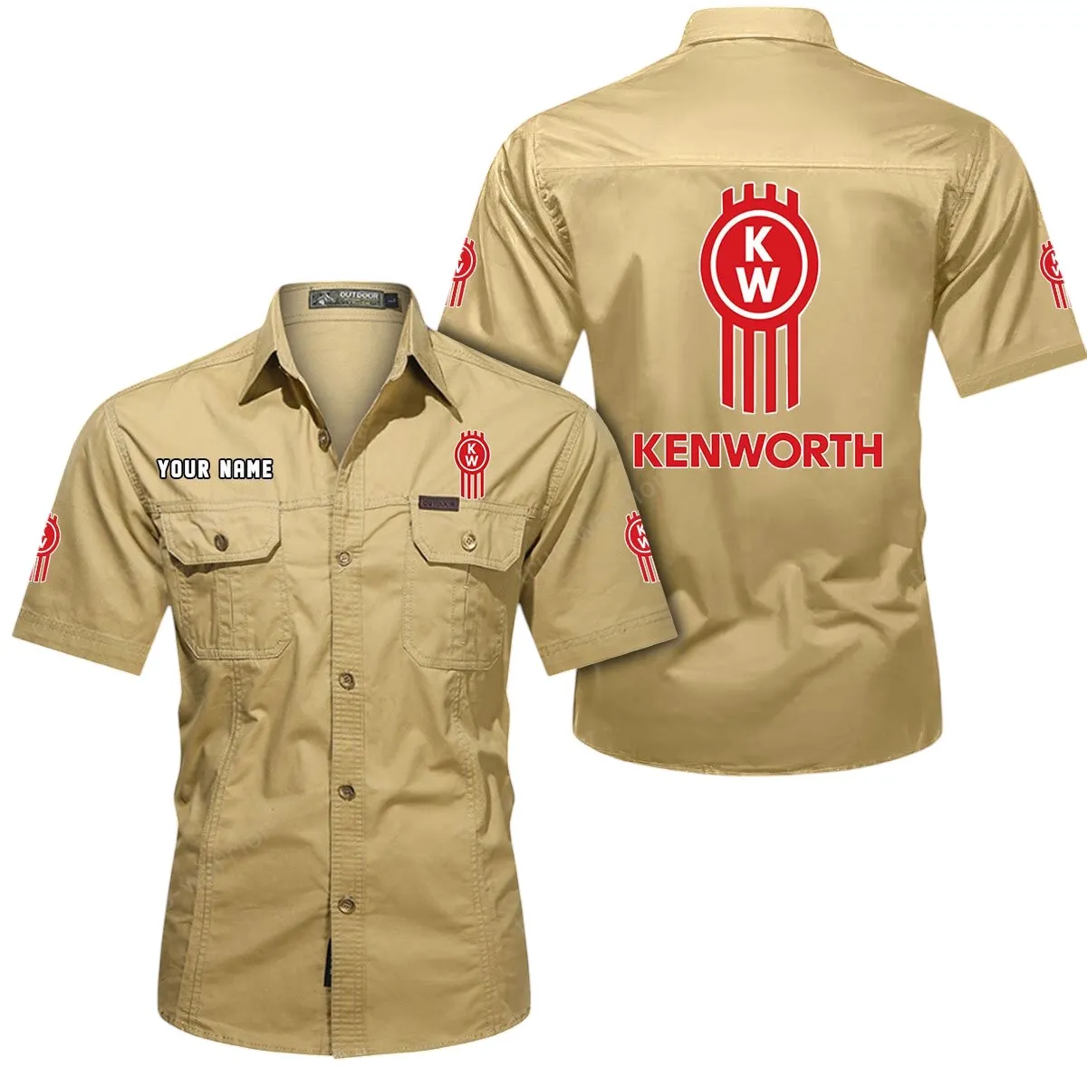 Kenworth Short Sleeved Shirt, All Over Print Button Shirt CAR444052625879 – Khaki