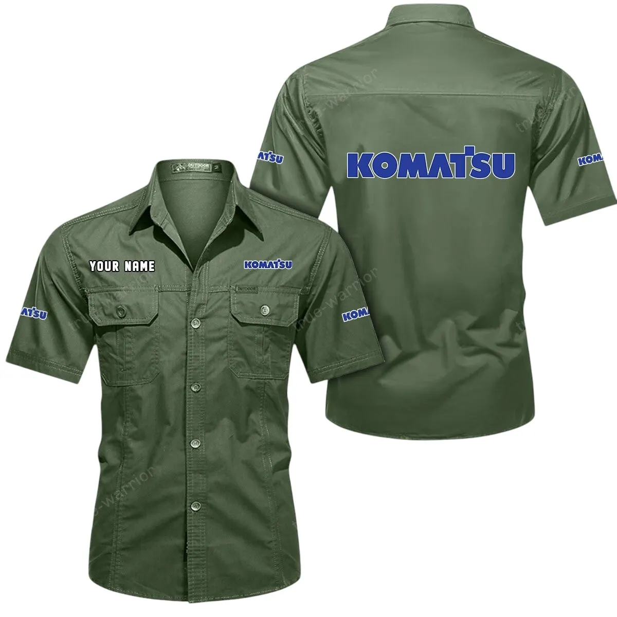 Komatsu Short Sleeved Shirt, All Over Print Button Shirt CAR444052625958 – Army Green