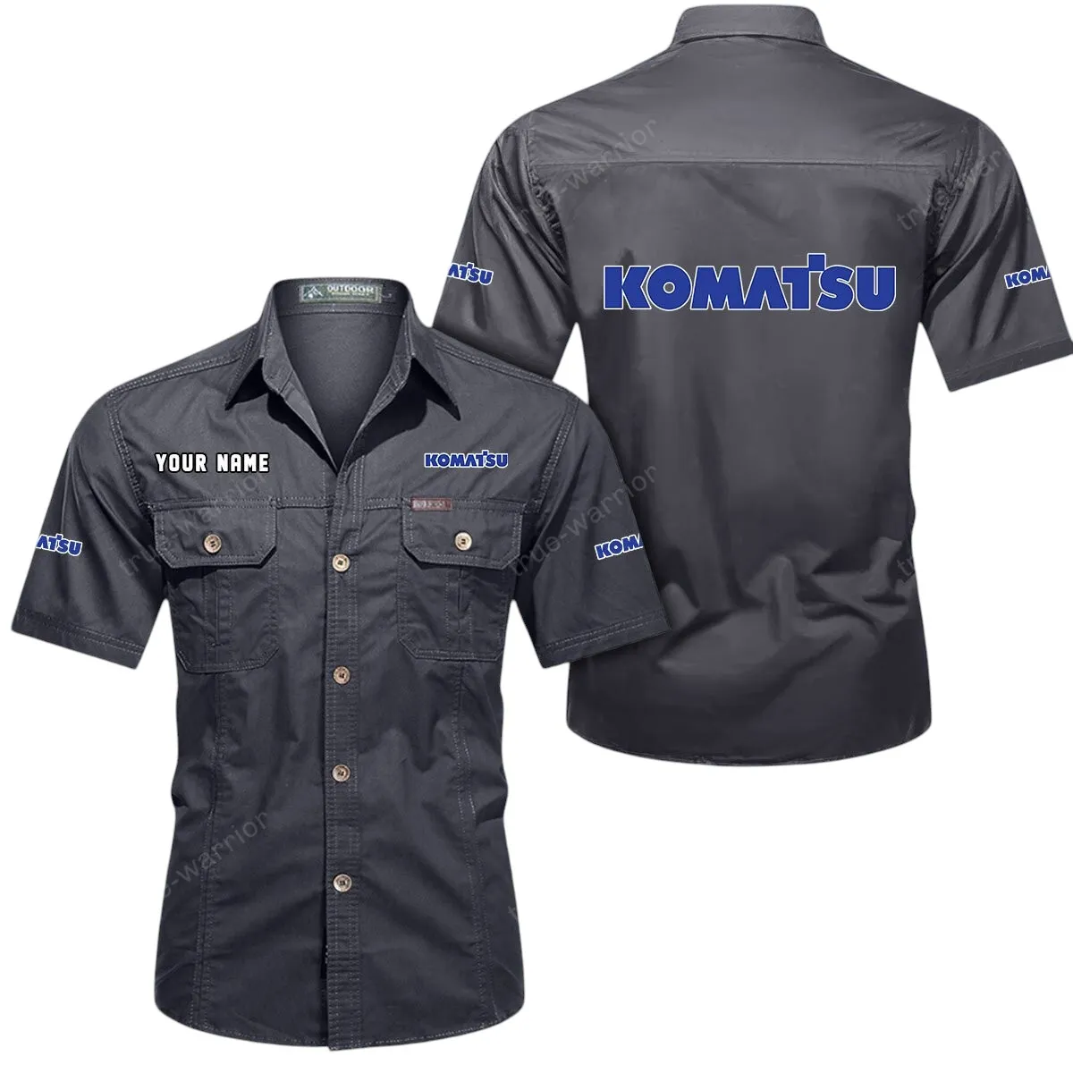 Komatsu Short Sleeved Shirt, All Over Print Button Shirt CAR444052625958 – Gray