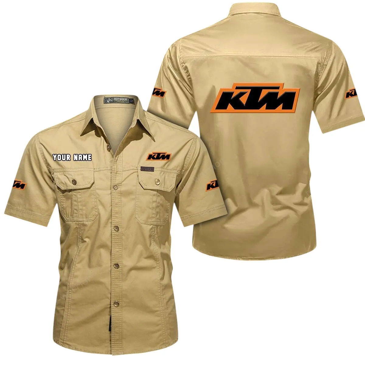 KTM Racing Short Sleeved Shirt, All Over Print Button Shirt CAR444052625801 – Khaki