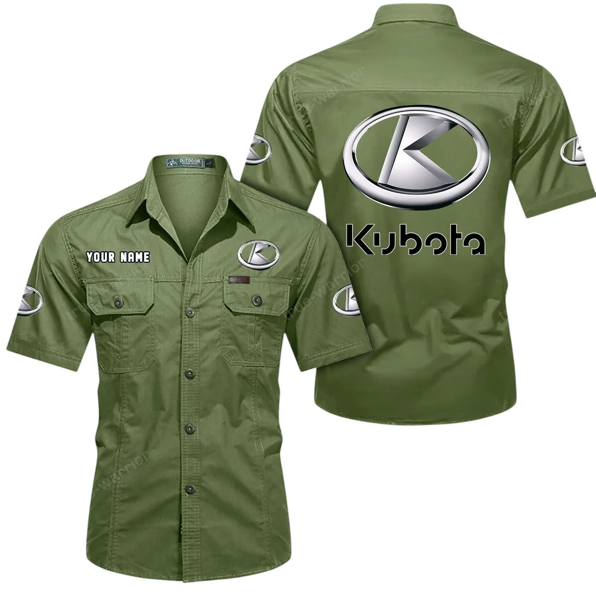 Kubota Short Sleeved Shirt, All Over Print Button Shirt CAR444052625910 - Army Green