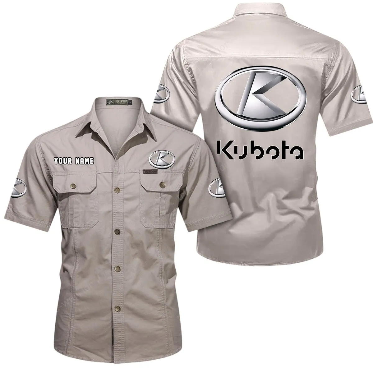 Kubota Short Sleeved Shirt, All Over Print Button Shirt CAR444052625910 – Beige