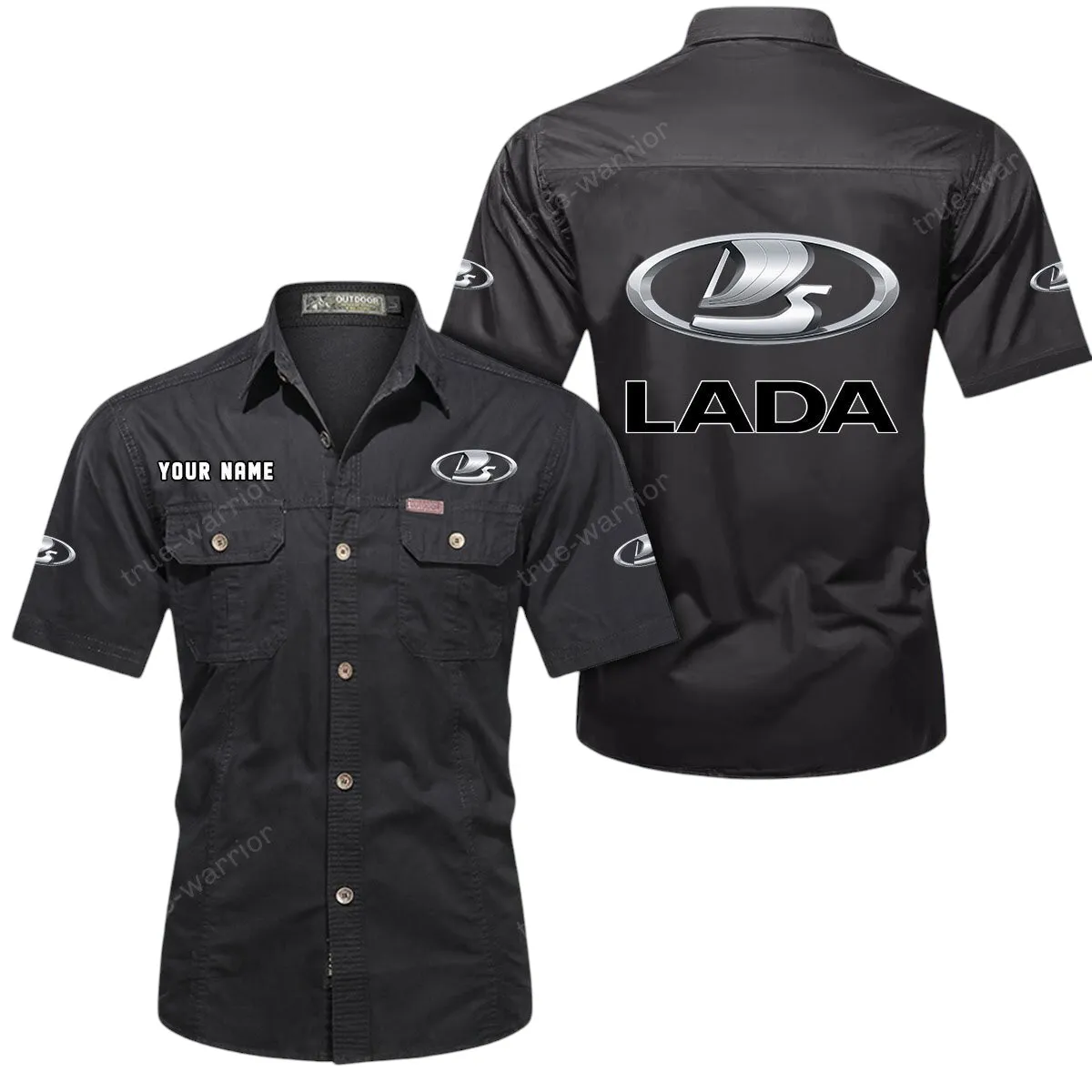 Lada Short Sleeved Shirt, All Over Print Button Shirt CAR444052625949 - Army Green