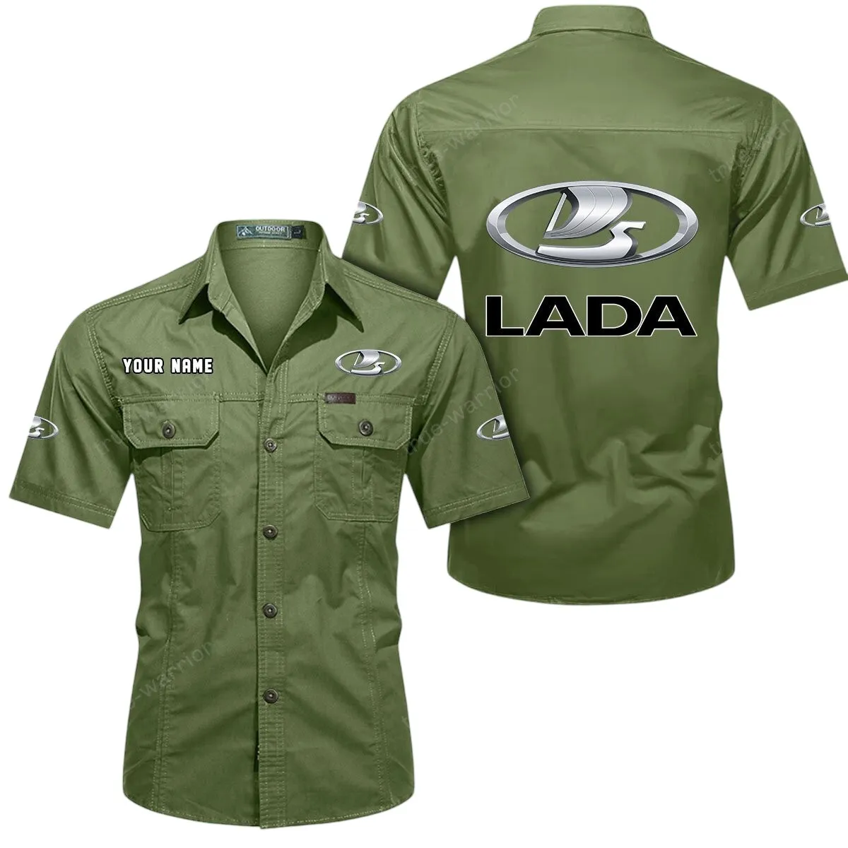 Lada Short Sleeved Shirt, All Over Print Button Shirt CAR444052625949 - Army Green
