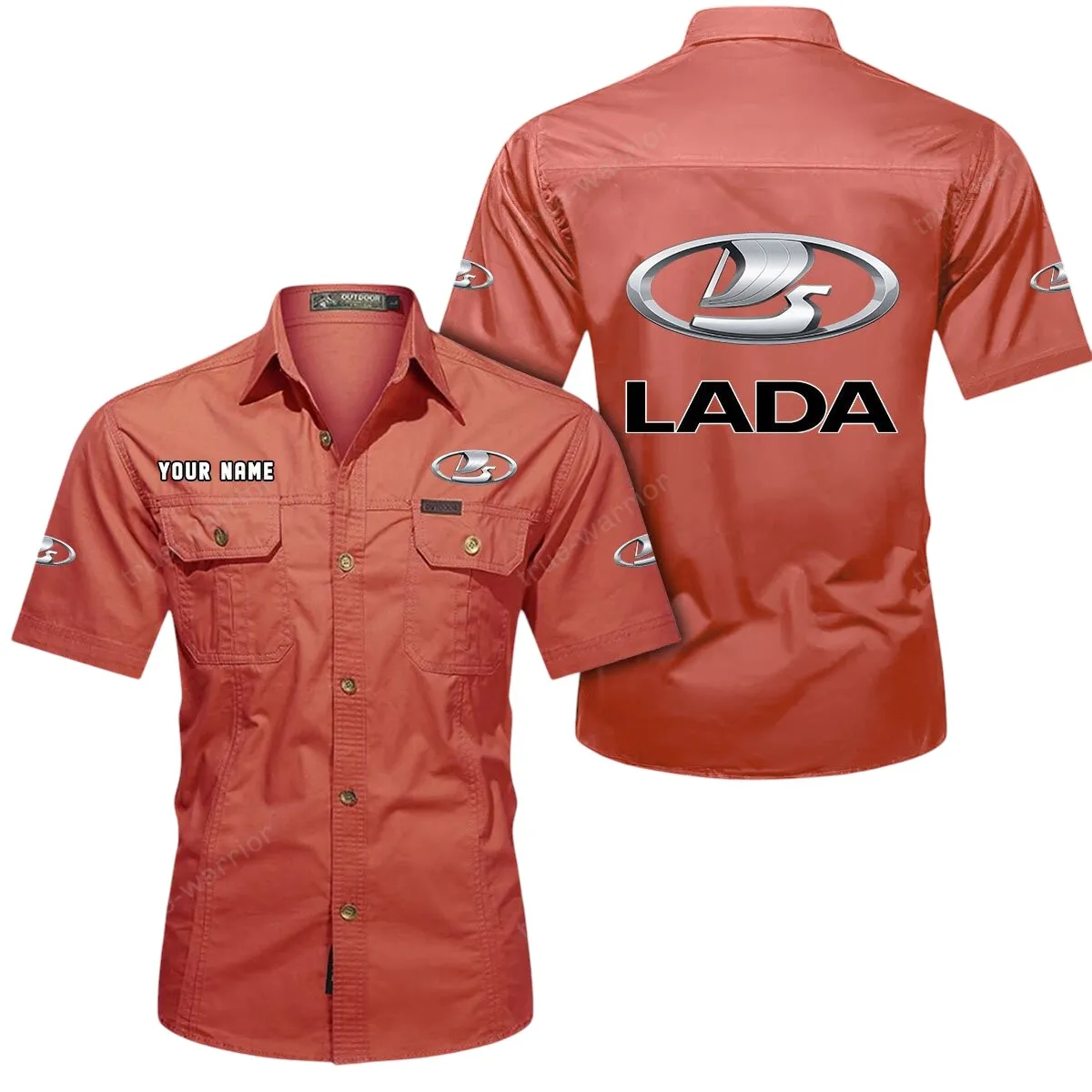 Lada Short Sleeved Shirt, All Over Print Button Shirt CAR444052625949 - Khaki