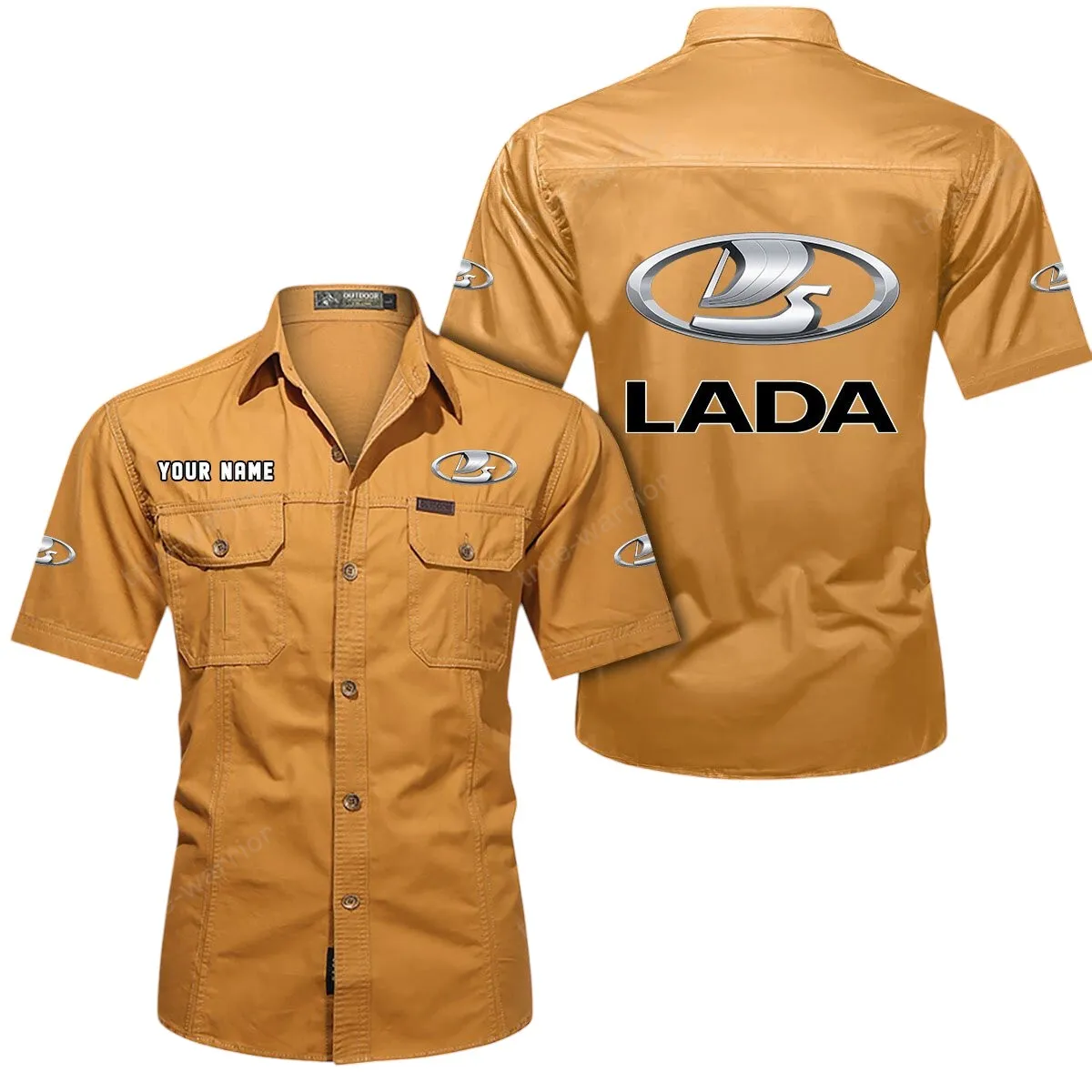 Lada Short Sleeved Shirt, All Over Print Button Shirt CAR444052625949 - Khaki