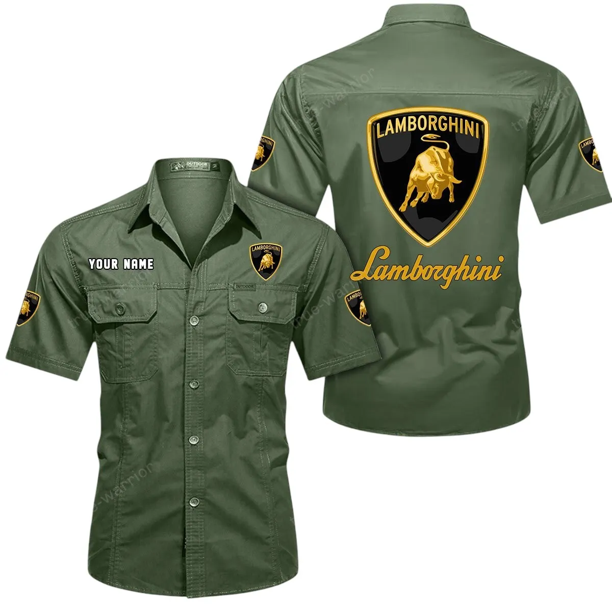 Lamborghini Short Sleeved Shirt, All Over Print Button Shirt CAR444052625840 - Army Green
