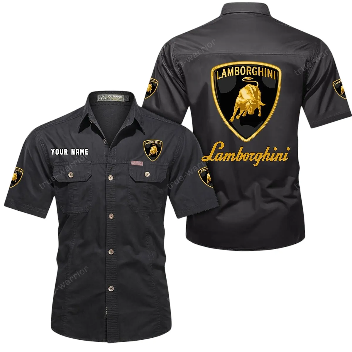 Lamborghini Short Sleeved Shirt, All Over Print Button Shirt CAR444052625840 – Black