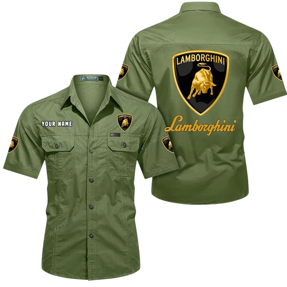 Lamborghini Short Sleeved Shirt, All Over Print Button Shirt CAR444052625840 - Army Green
