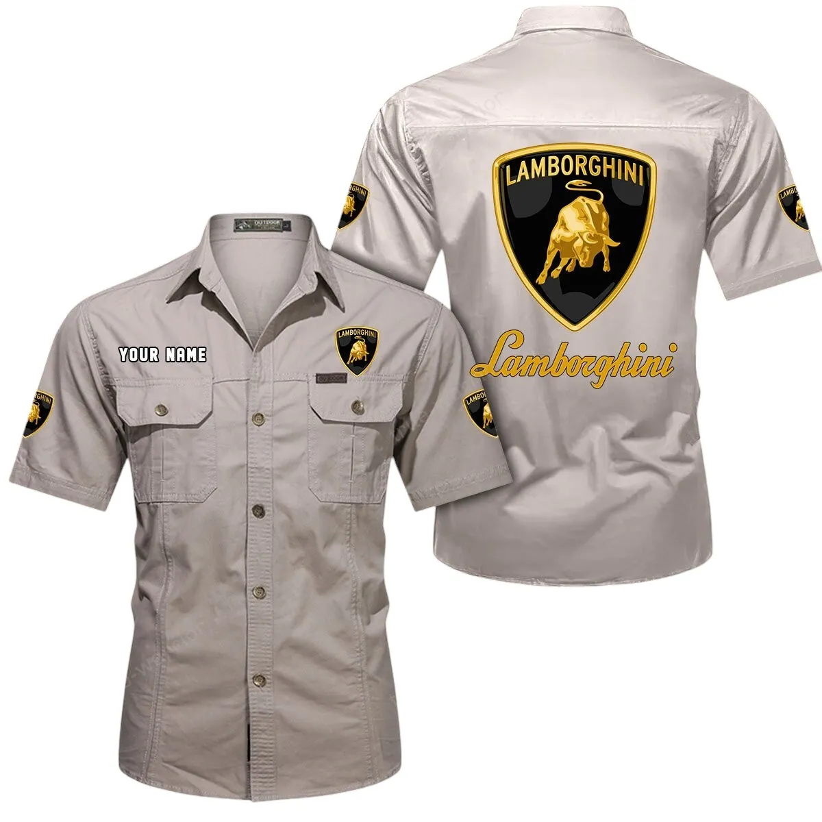Lamborghini Short Sleeved Shirt, All Over Print Button Shirt CAR444052625840 - Khaki