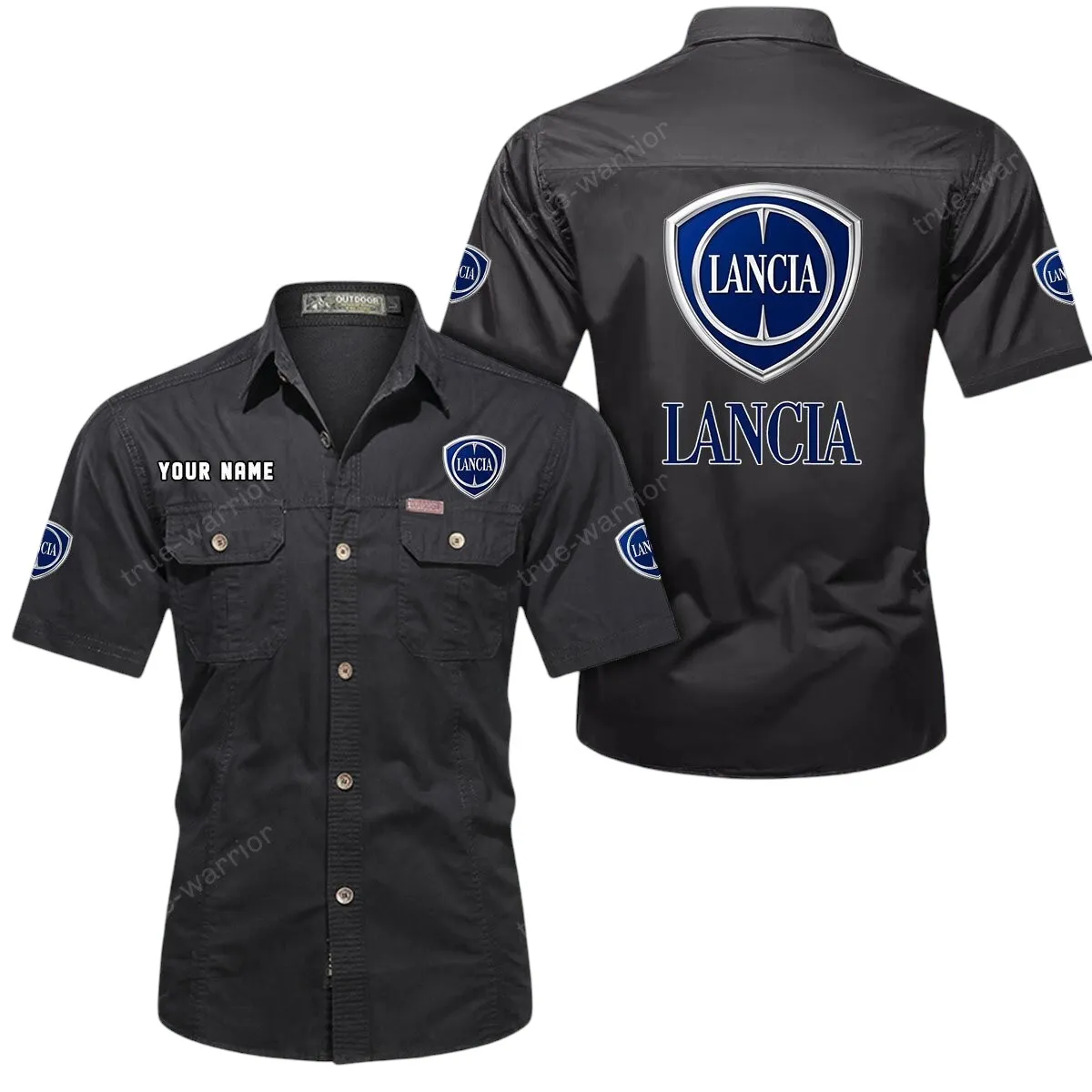 Lancia Short Sleeved Shirt, All Over Print Button Shirt CAR444052625963 - Dark Blue