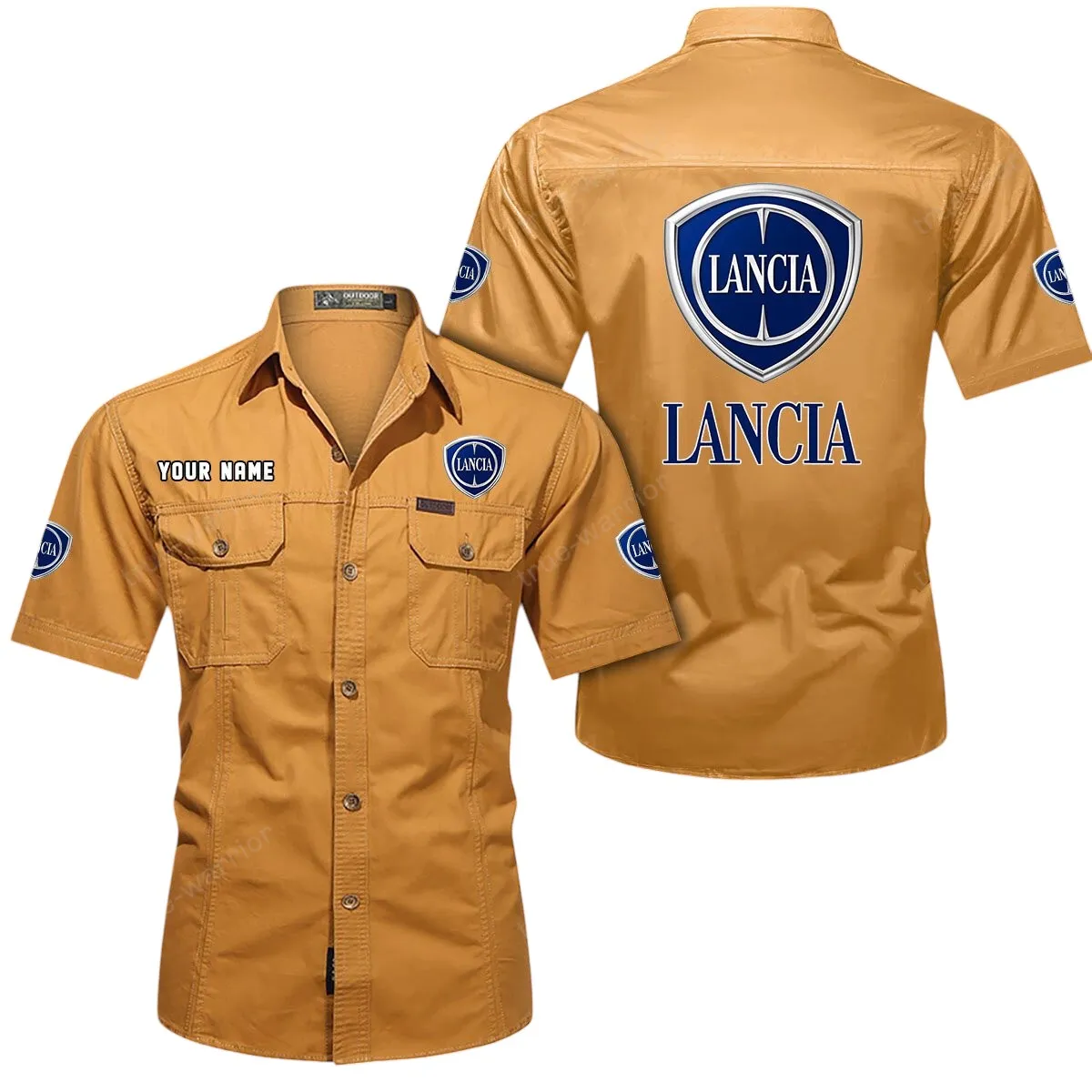 Lancia Short Sleeved Shirt, All Over Print Button Shirt CAR444052625963 - Khaki