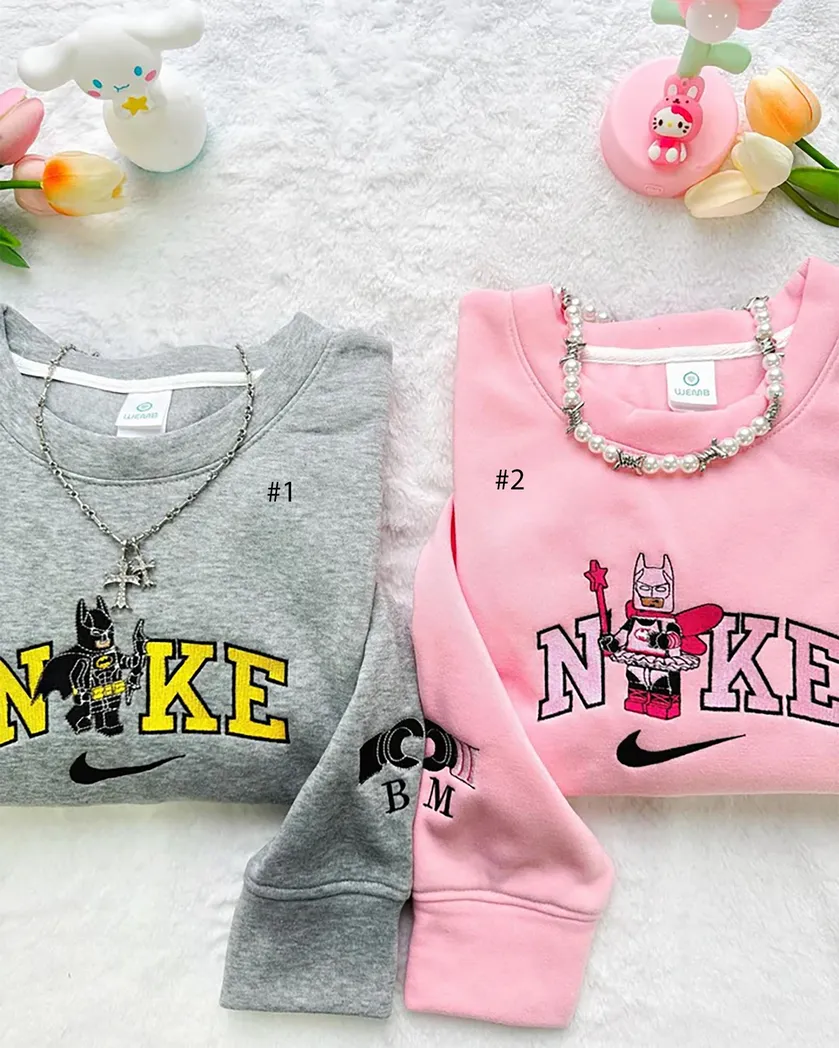 Lego Batman And Pink Batman x Nike Embroidered Sweatshirt Fashion Style For Couples, Valentines Gift For Him/Her