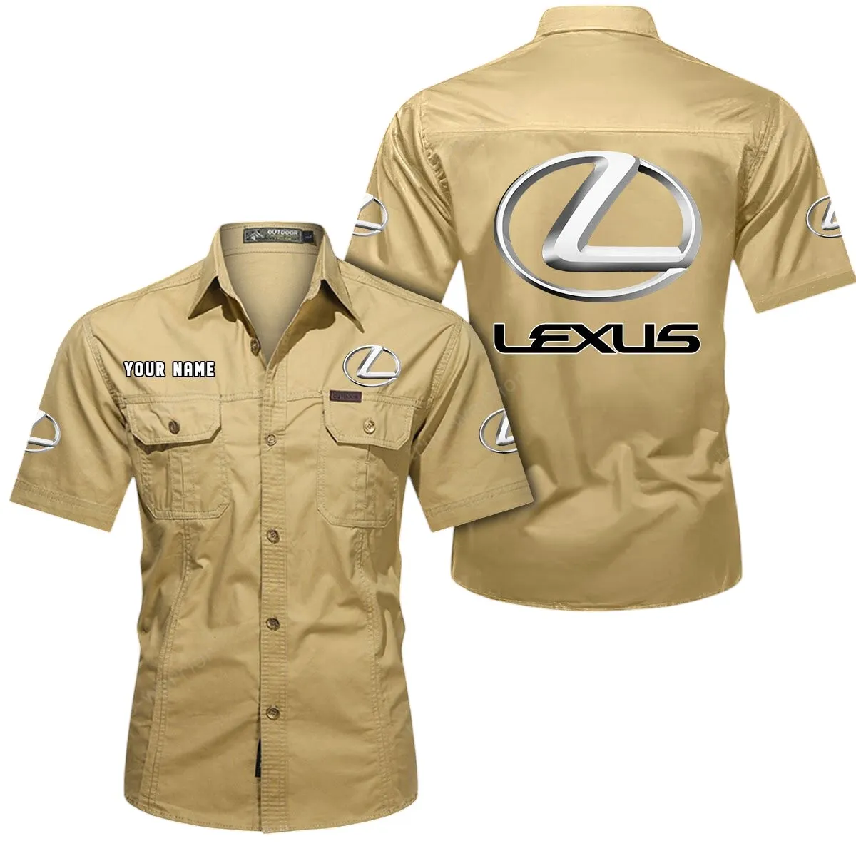 Lexus Short Sleeved Shirt, All Over Print Button Shirt CAR444052625904 – Khaki