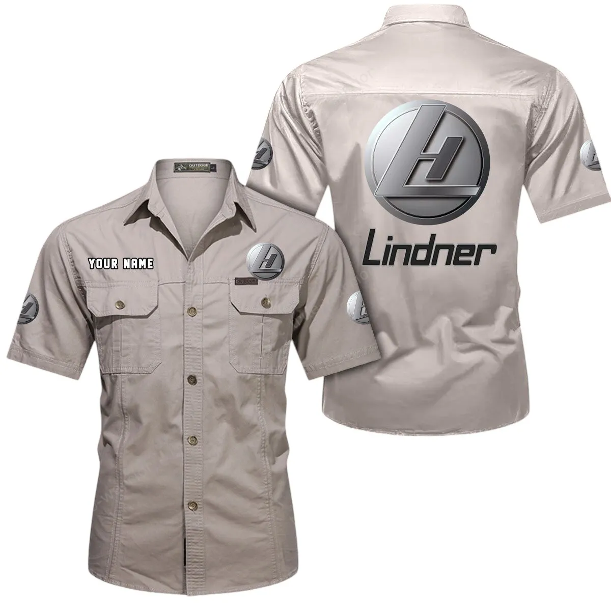 Lindner Short Sleeved Shirt, All Over Print Button Shirt CAR444052625950 - Khaki