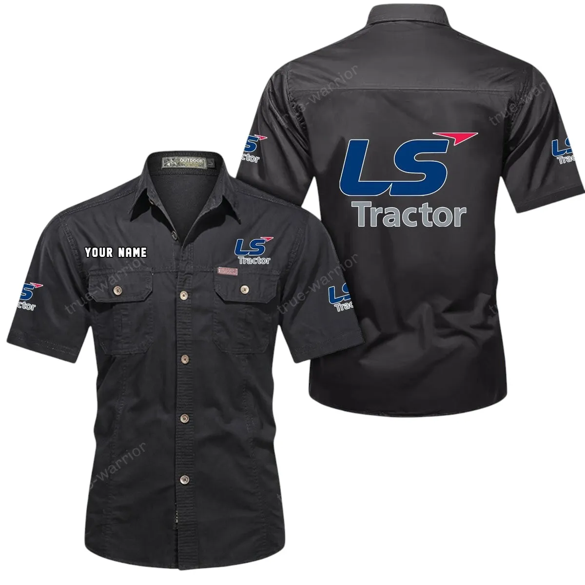 LS Tractor Short Sleeved Shirt, All Over Print Button Shirt CAR444052625898 - Khaki