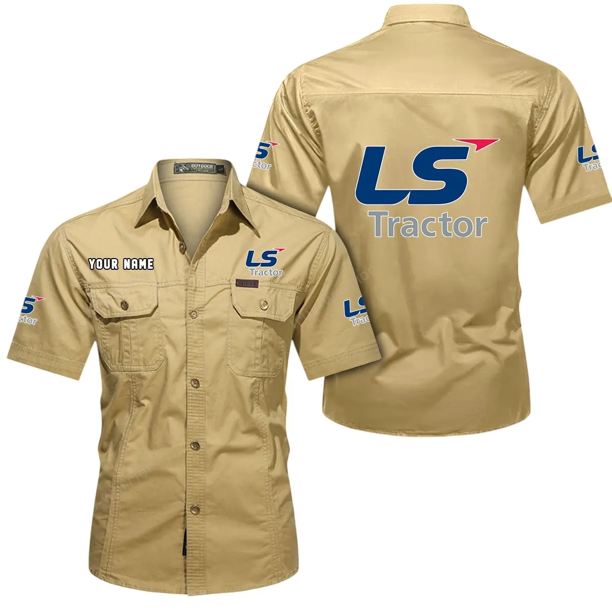 LS Tractor Short Sleeved Shirt, All Over Print Button Shirt CAR444052625898 – Khaki