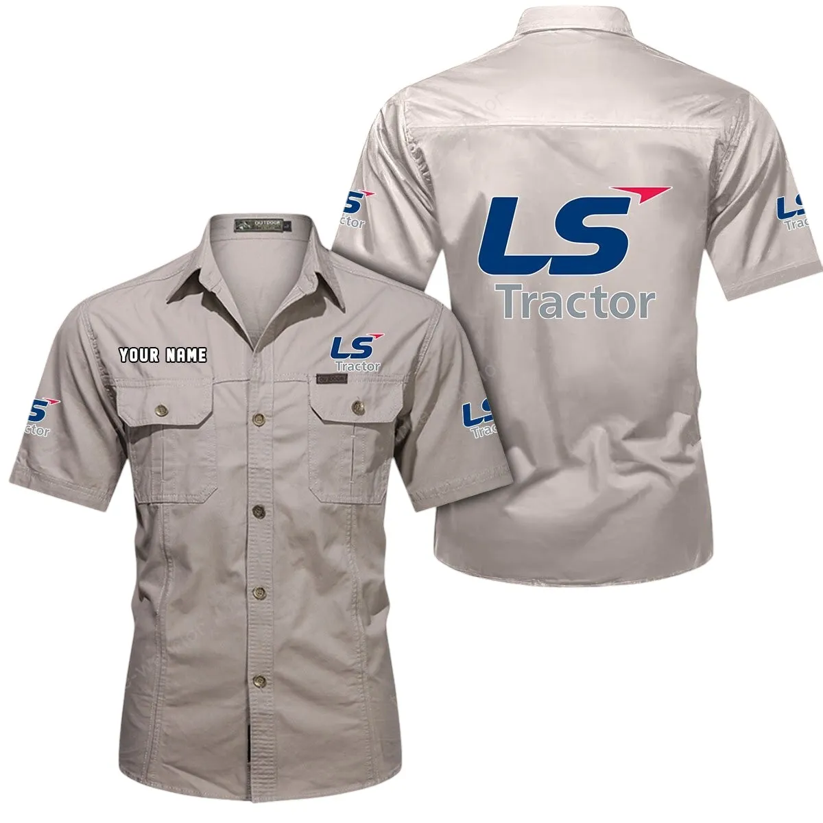 LS Tractor Short Sleeved Shirt, All Over Print Button Shirt CAR444052625898 - Khaki