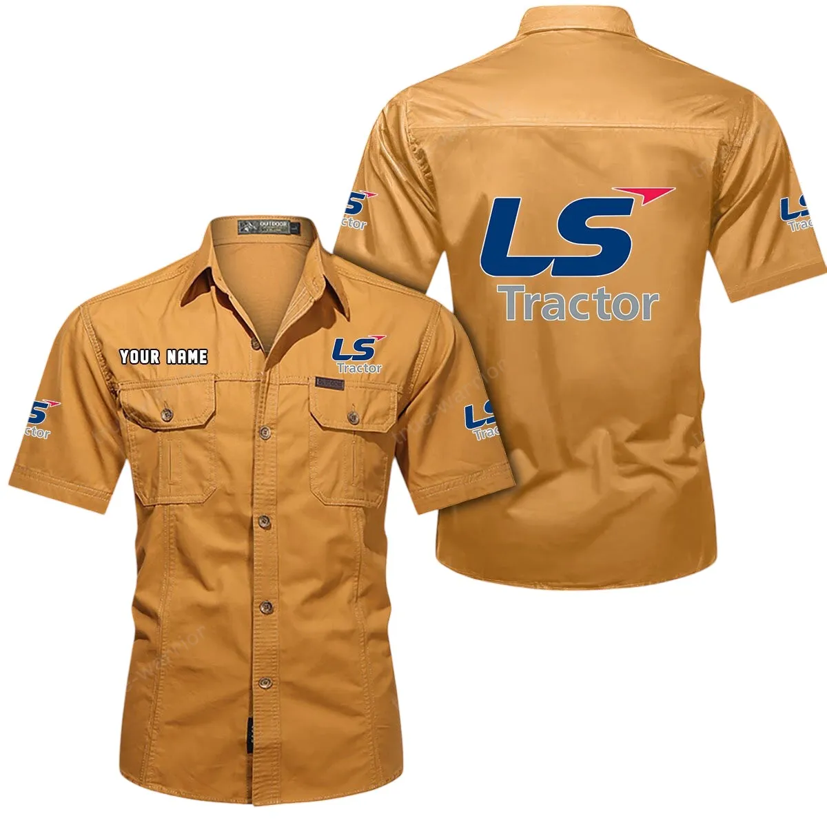 LS Tractor Short Sleeved Shirt, All Over Print Button Shirt CAR444052625898 - Khaki