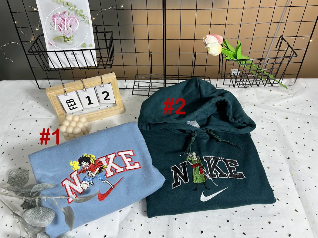 Luffy And Zoro One Piece Anime x Nike Embroidered Sweatshirt Fashion Style For Couples, Valentines Gift For Him/Her