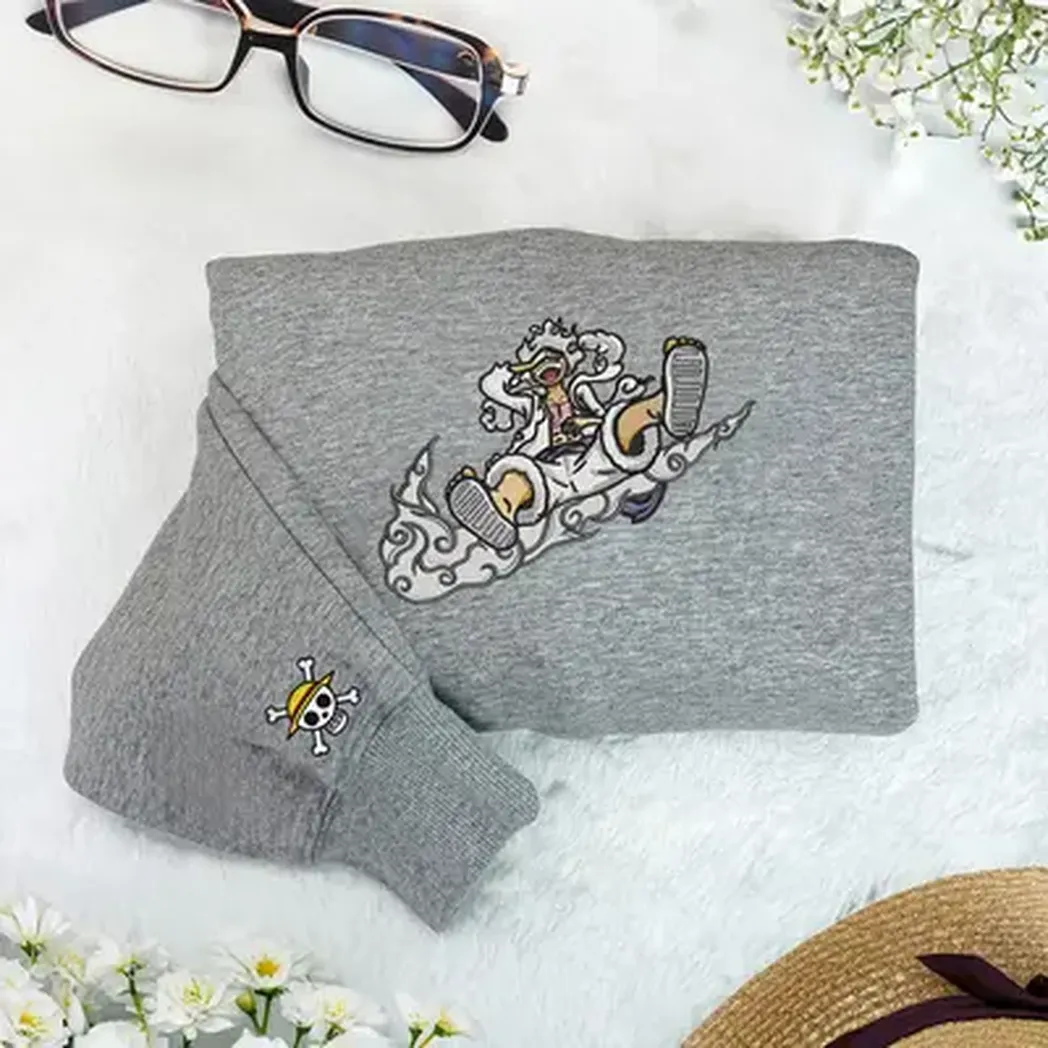 Luffy One Piece x Nike Embroidered Sweatshirt Fashion Style For Couples, Valentines Gift For Him/Her