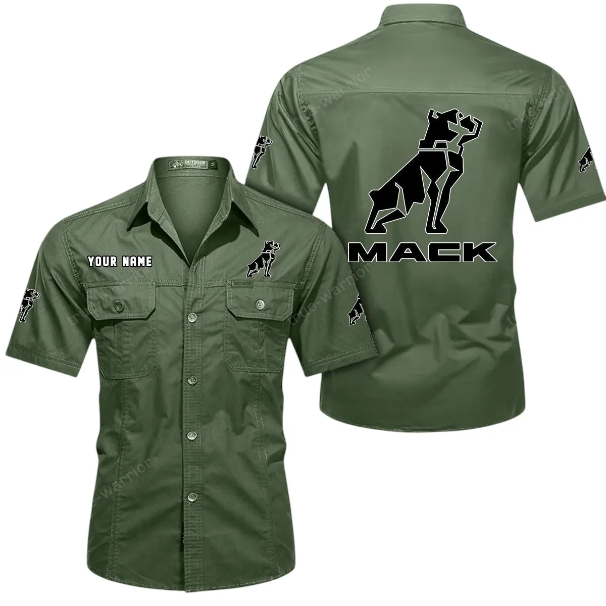 Mack Short Sleeved Shirt, All Over Print Button Shirt CAR444052625877 - Army Green